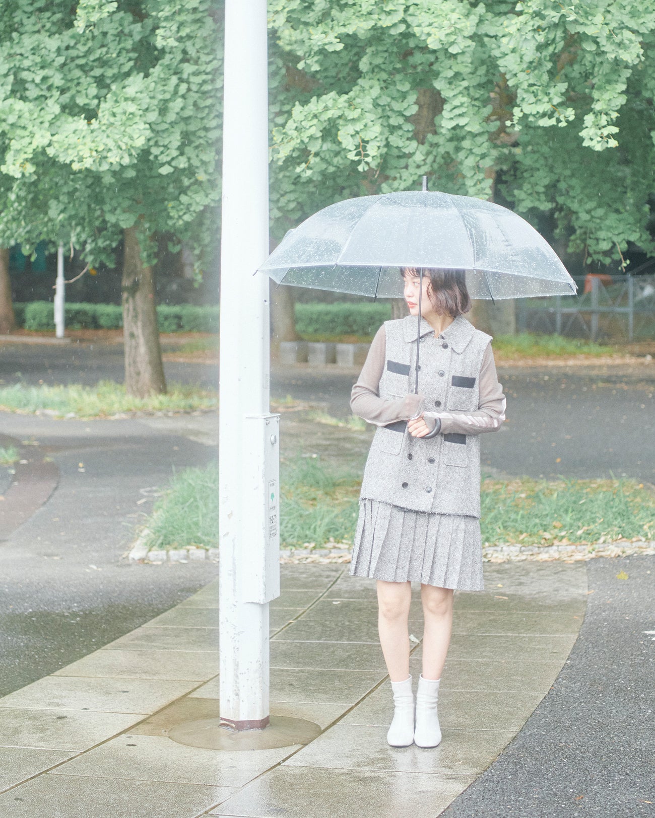 You can wear it not only as a dress but also as a jacket by removing the skirt part.