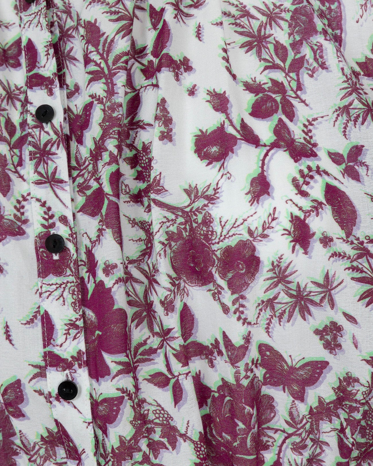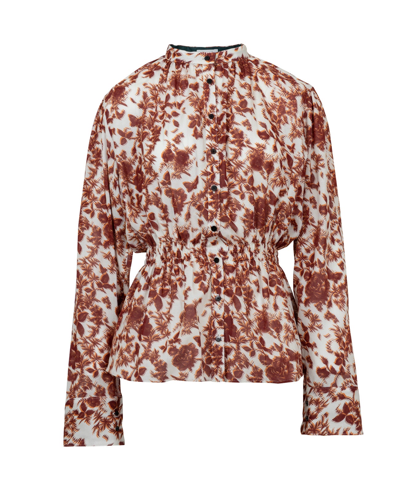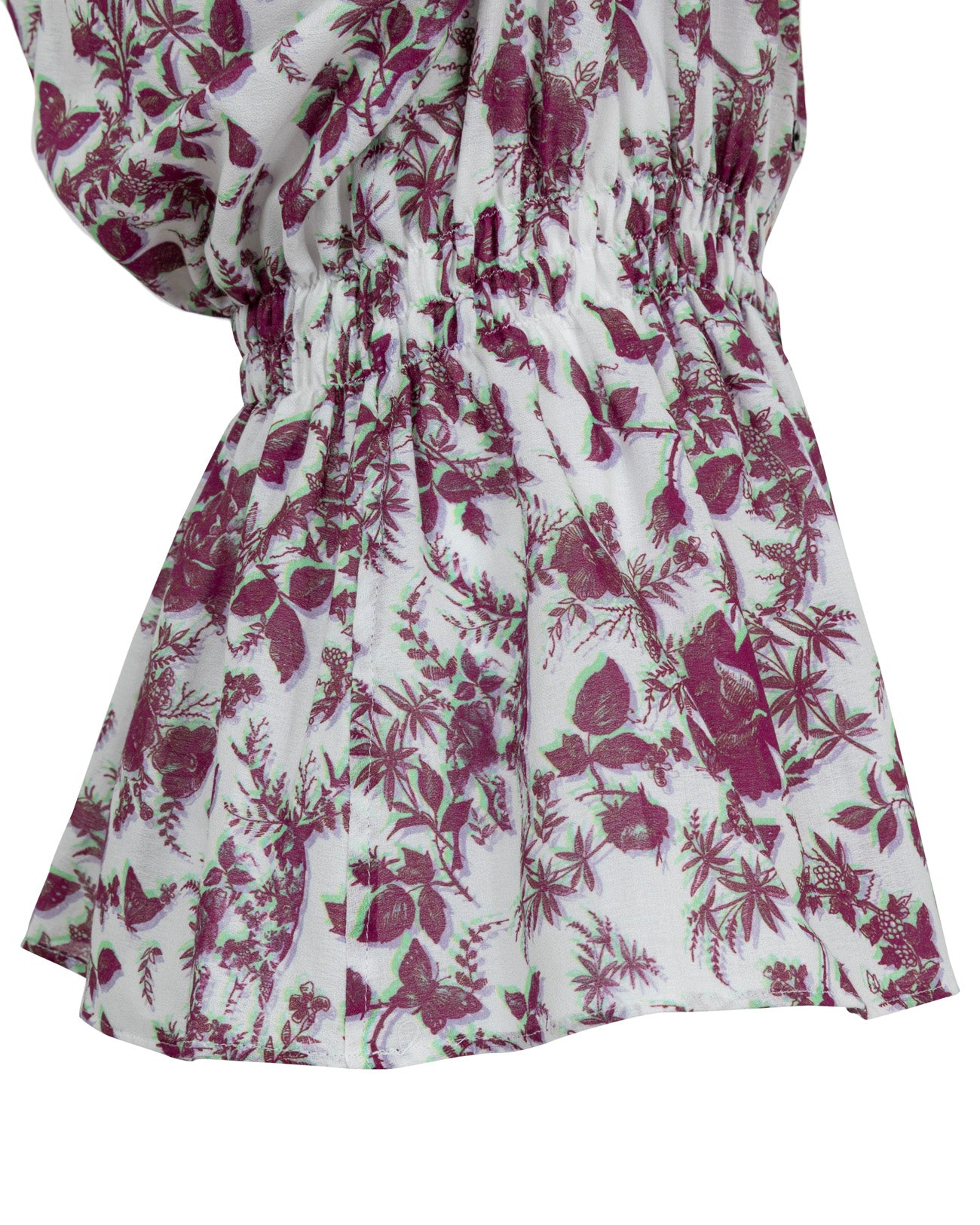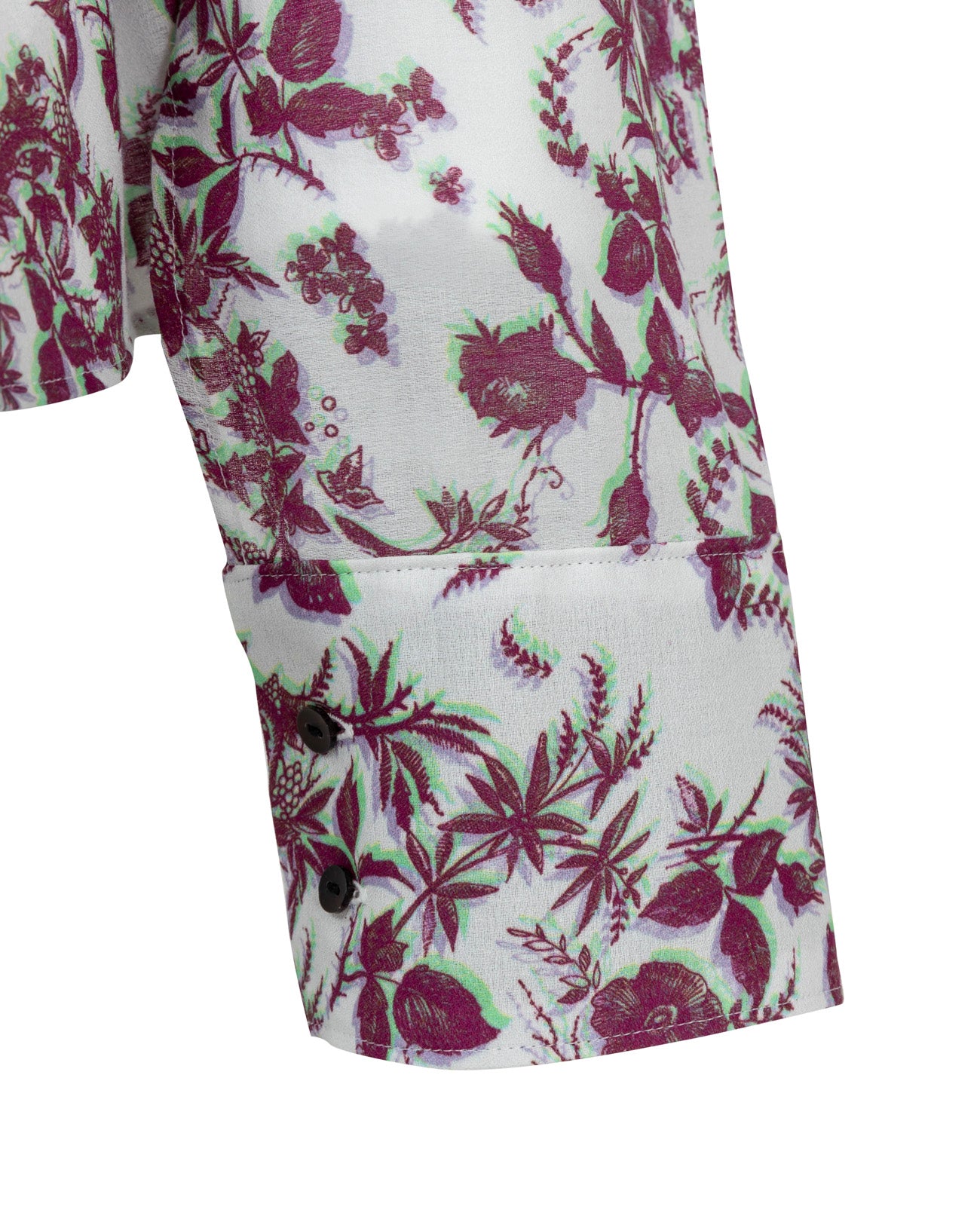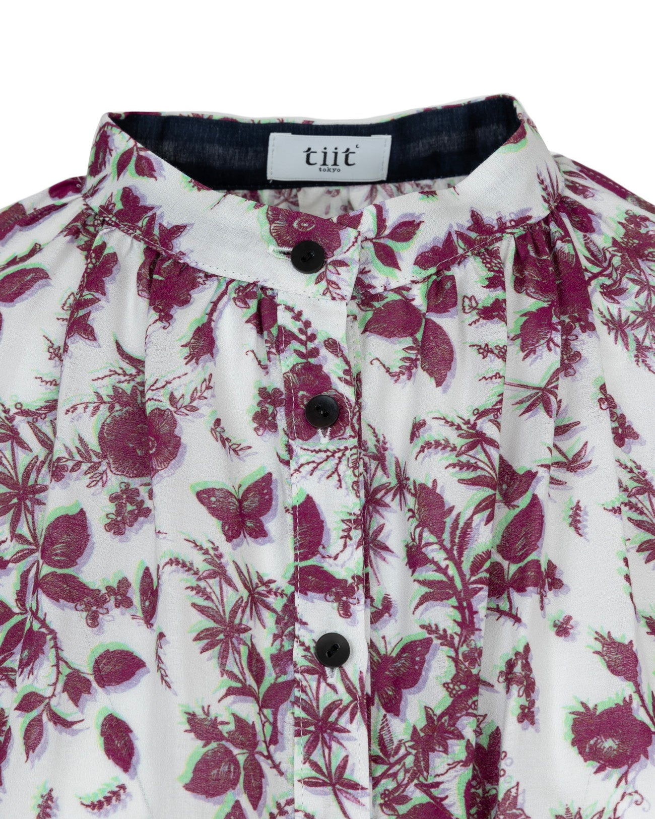 立体感のある小花柄のオリジナルプリント生地を使用。色鮮やかなプリント柄と優しいコットン素材のコントラストが魅力のアイテムです。ウエストはゴムシャーリング加工が施されている為ウエストにフィットし、女性らしいシルエットになります。袖口の裏側はバイカラーになっており、折り上げての着用もおすすめです。