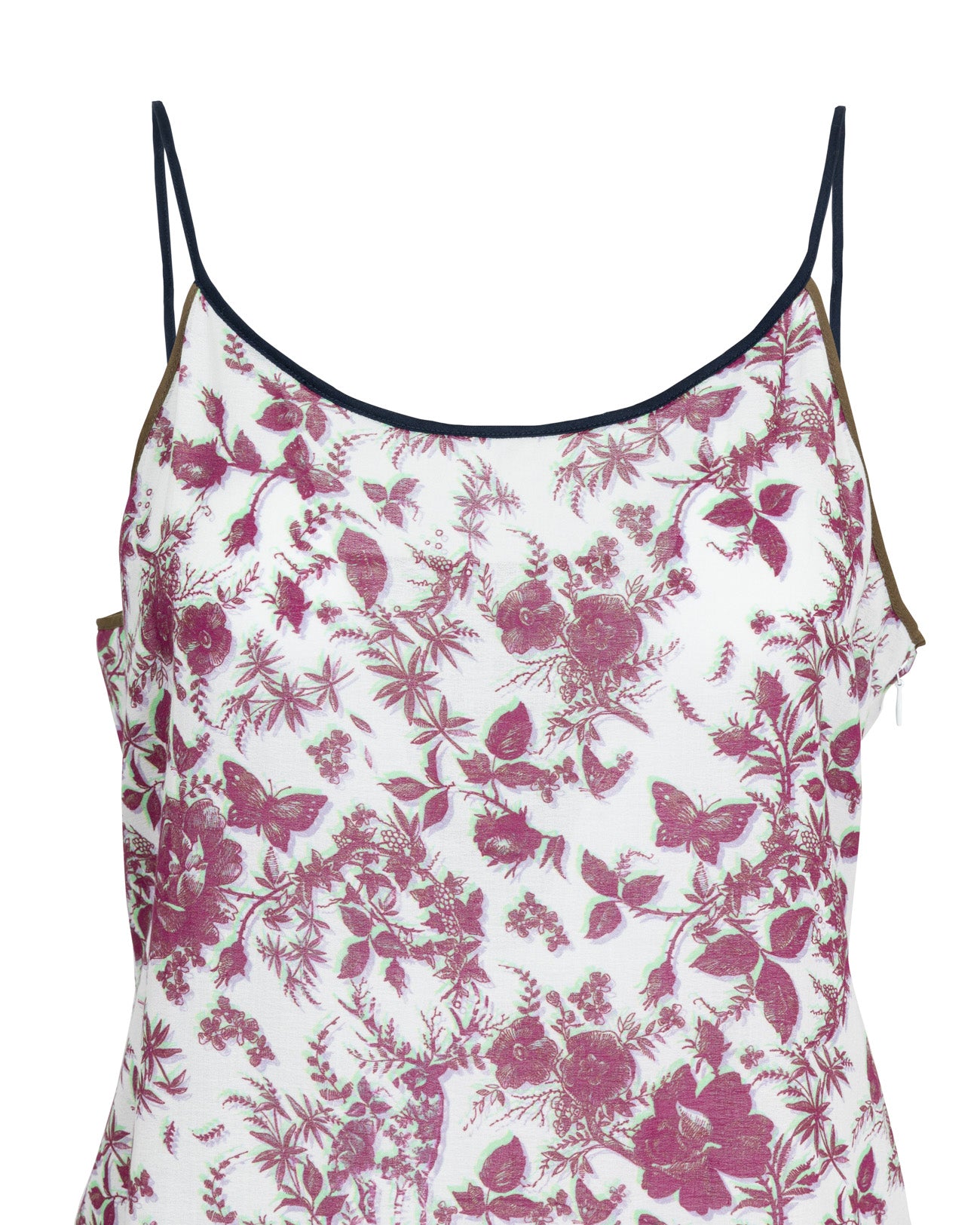 立体感のある小花柄のオリジナルプリント生地を使用。色鮮やかなプリント柄と優しいコットン素材のコントラストが魅力のアイテムです。肩紐はバイカラーになっており胸元も華やかに演出してくれます。