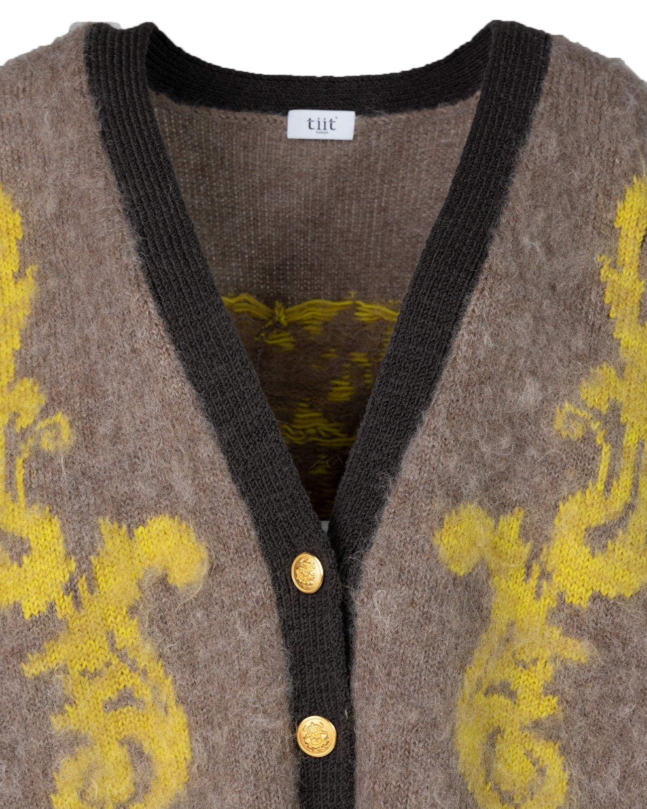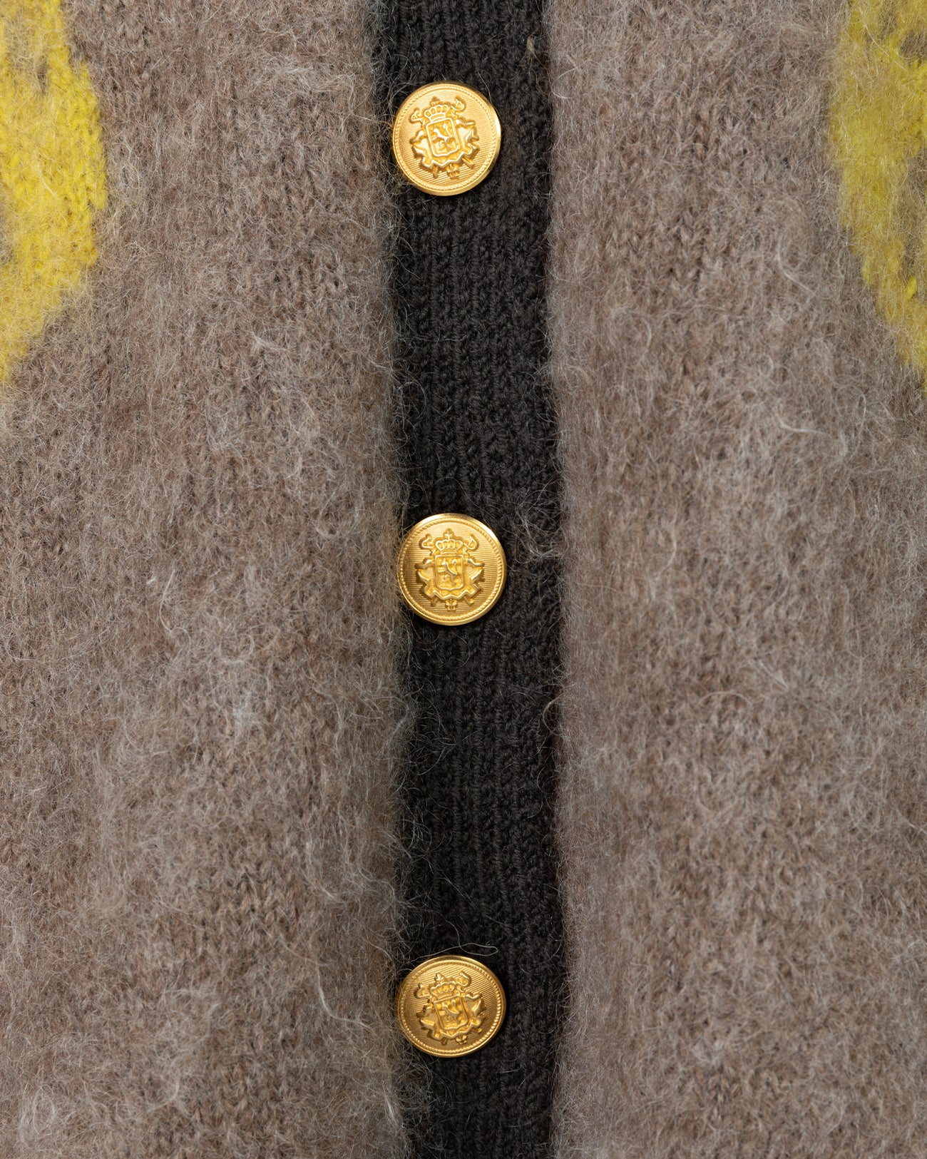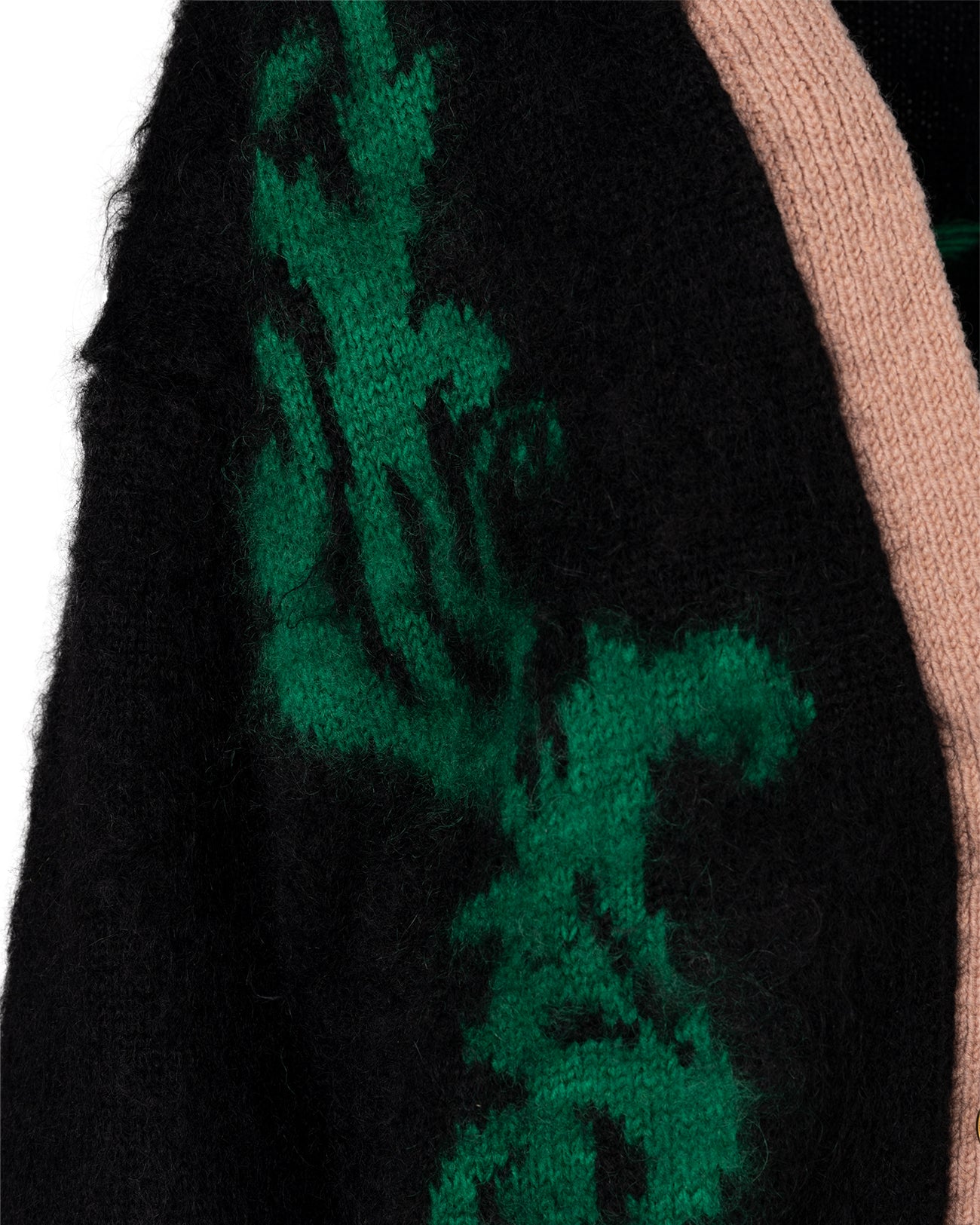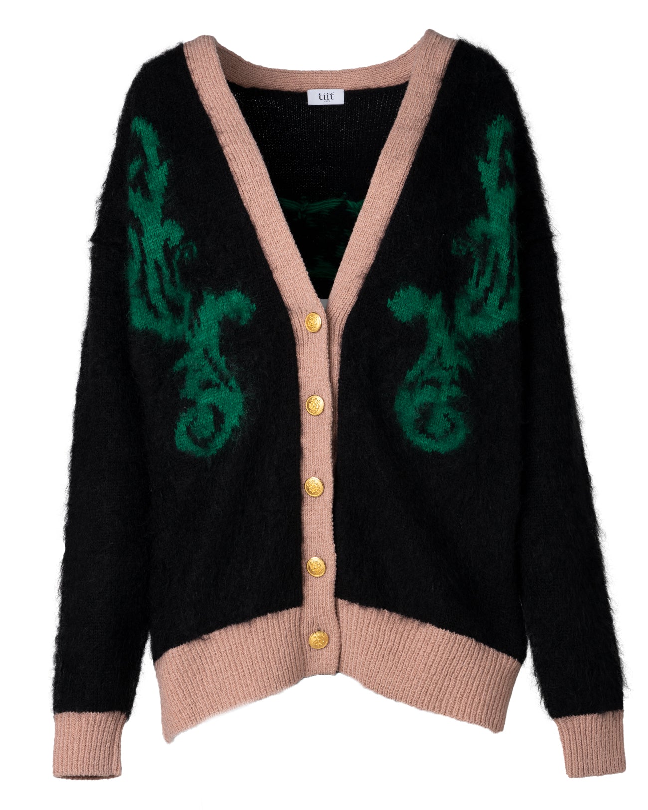 一枚一枚職人の手で編まれた特別なニットカーディガン。後ろ身には大きな天使模様が特徴的で手編みならではのふっくらとした柔らかい肌触りが魅力な商品です。