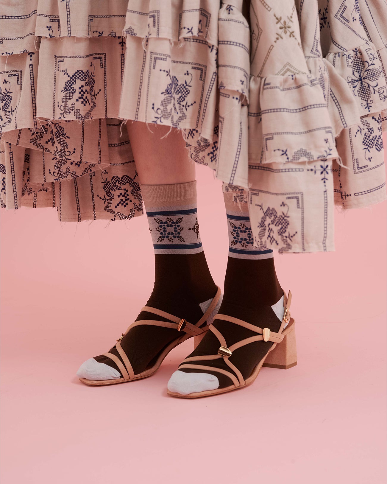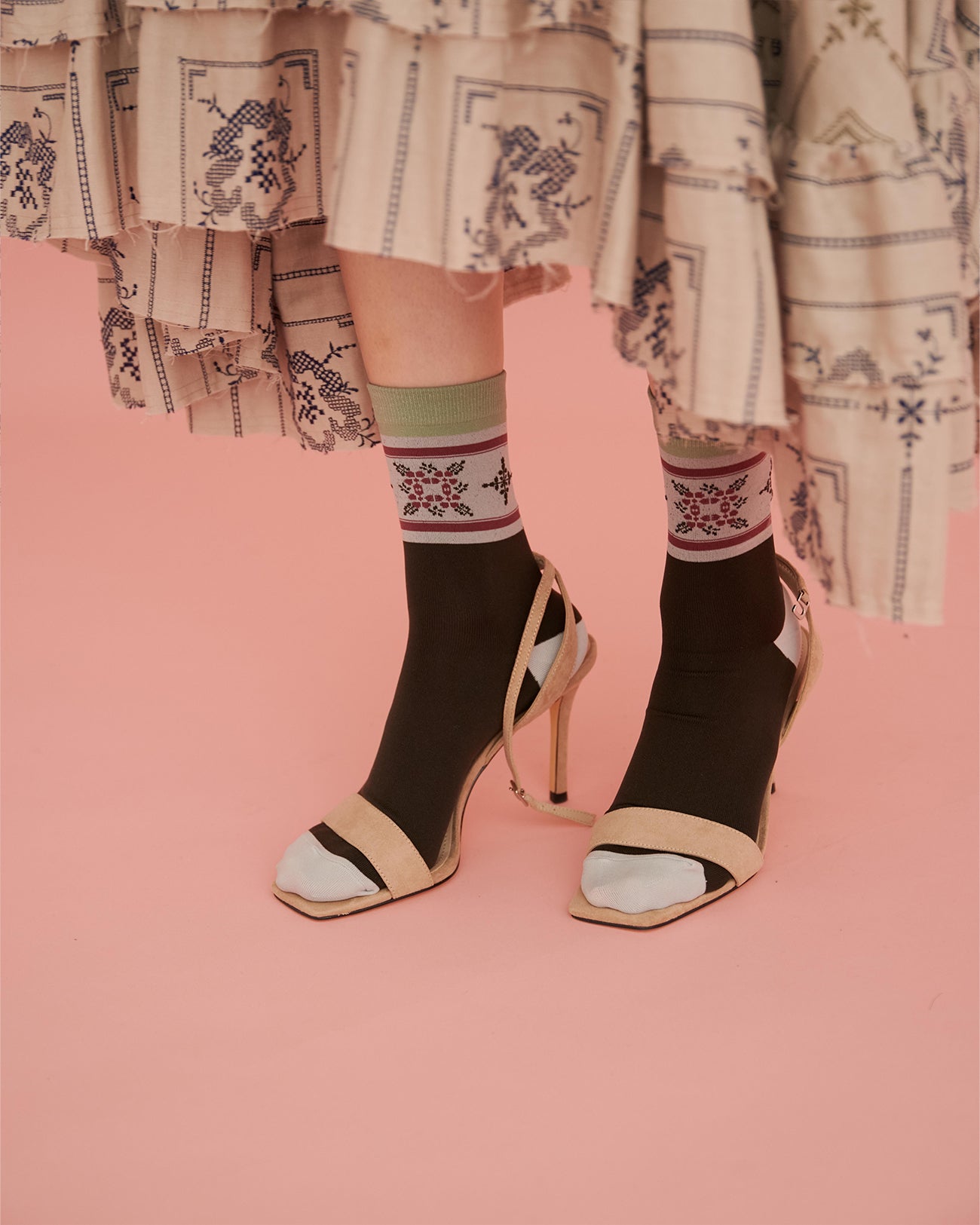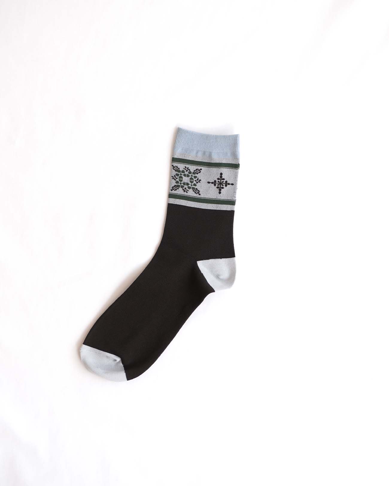 全体的に目を惹くクラシカルな柄が特徴的なオリジナルsocksになります。履き口は程よいフィット感のリブ編みで仕上げ柔らかく、さらりとした肌触りで履き心地も抜群です。同シリーズで丈違いもございます。ギフトにもぴったりなアイテムです。