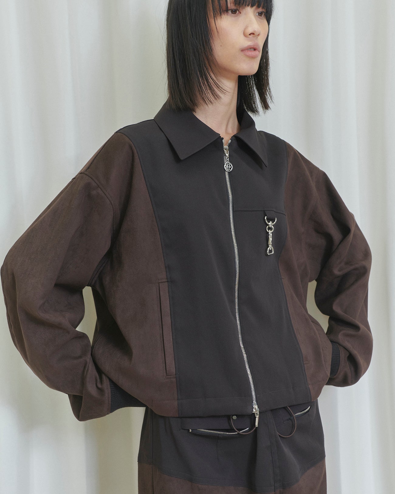 A zip-up jacket made from high-quality lightweight suede used on the inside. It features a soft and comfortable style with light padding. The preppy-style collar adds a sporty vibe. This is a jacket you’ll want to add to your wardrobe for the changing seasons. It is characterized by numerous panels and design elements with accents. With an oversized fit, opening and closing zipper, and fully lined, it’s an easy-to-wear item for autumn and winter. It is also recommended to wear it as a set with heavy suede pants.
