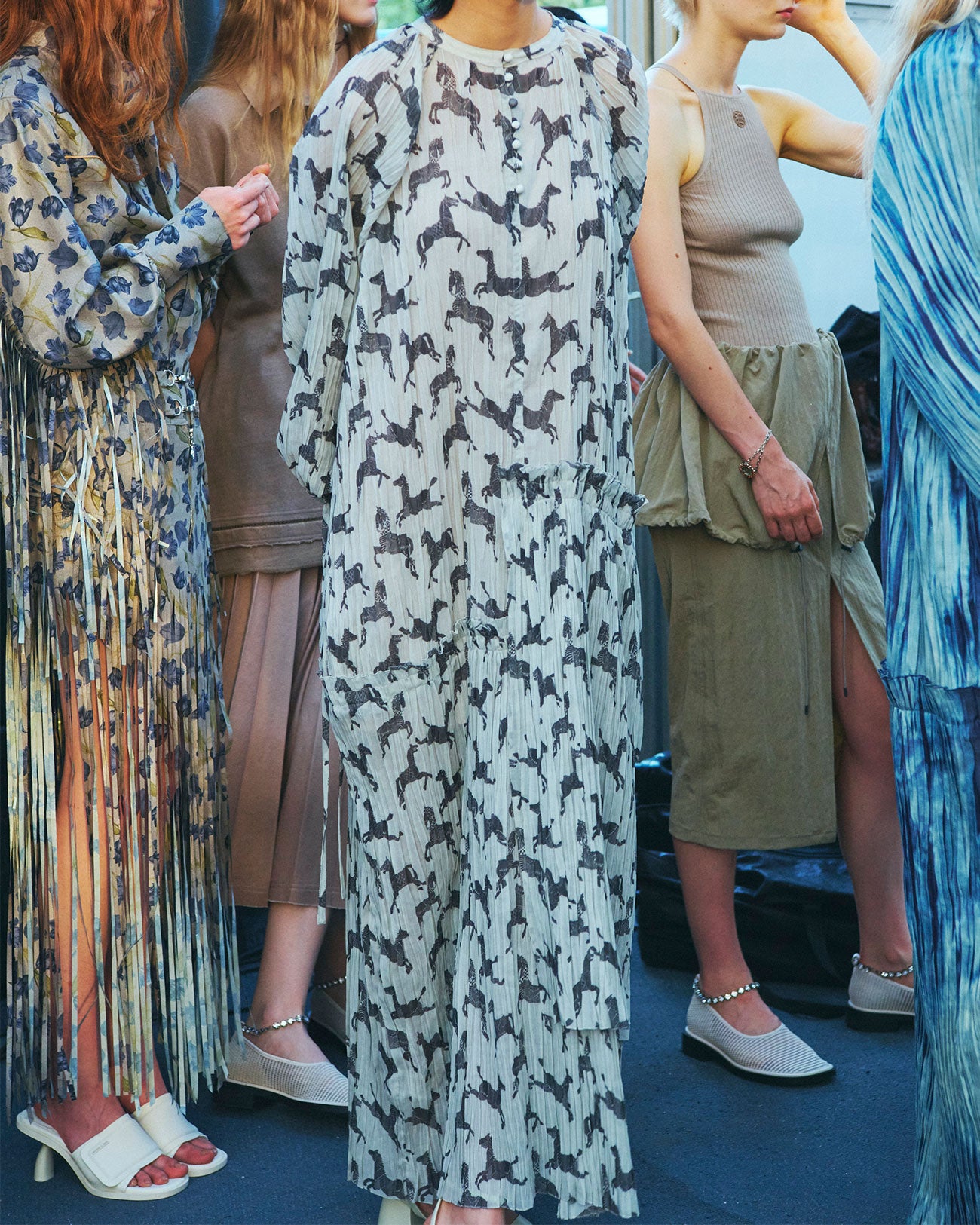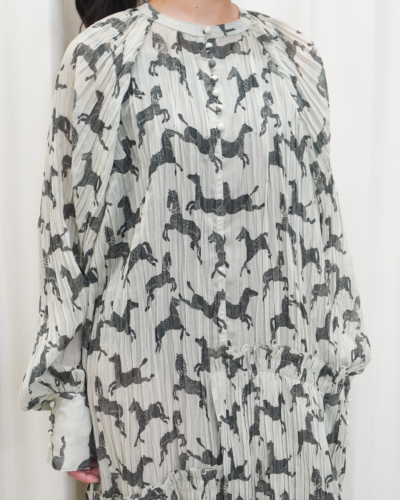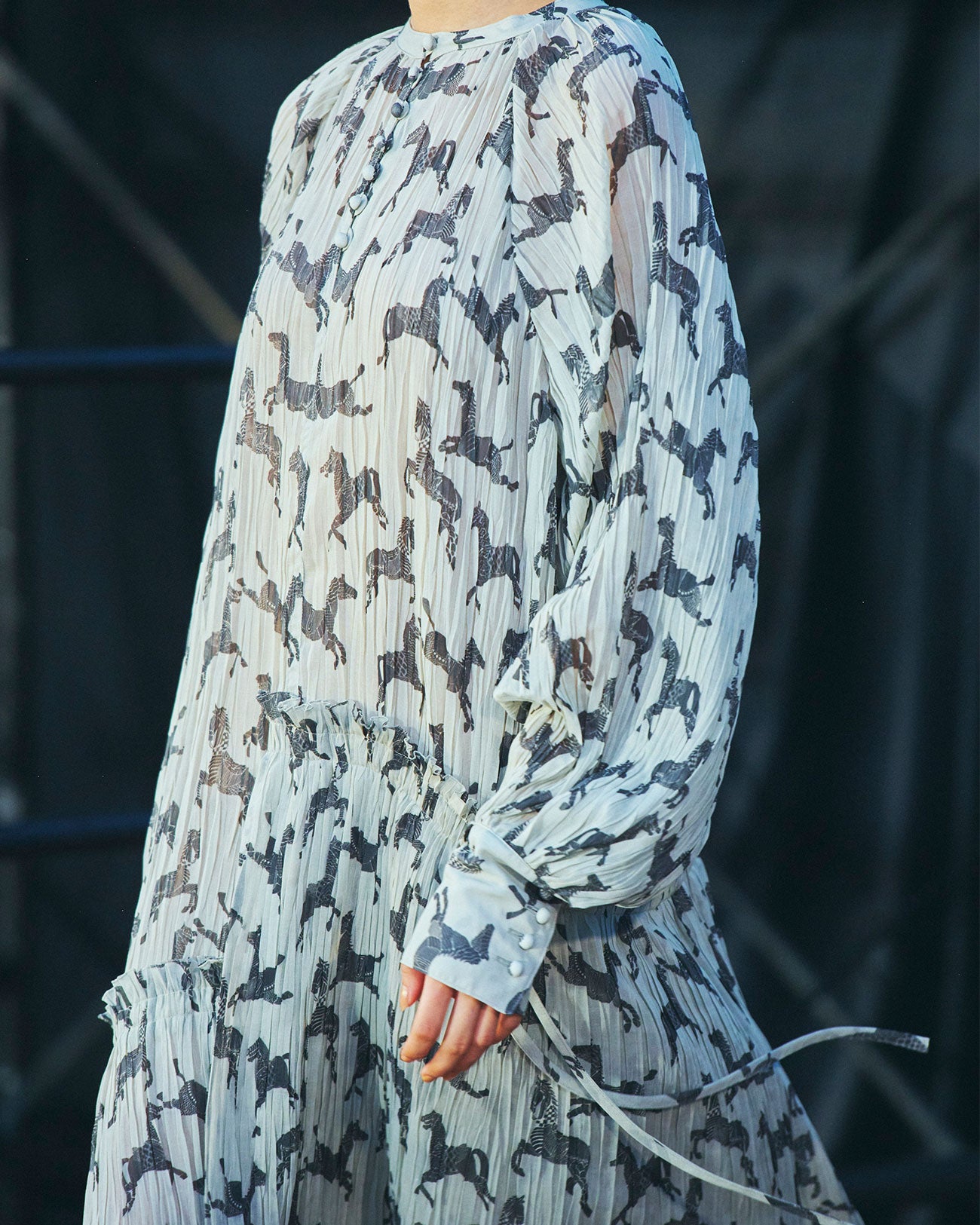 さらりとしたシアーの生地にプリント加工を施したオーバーサイズワンピース。