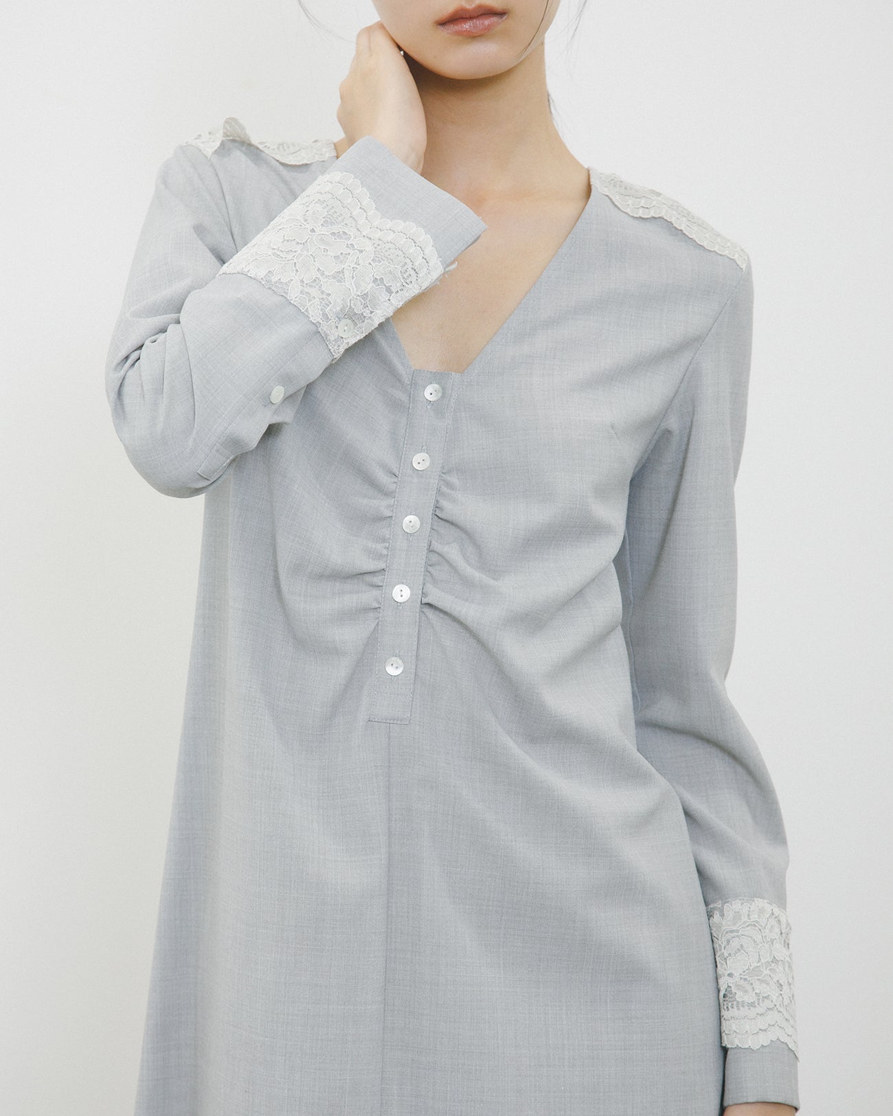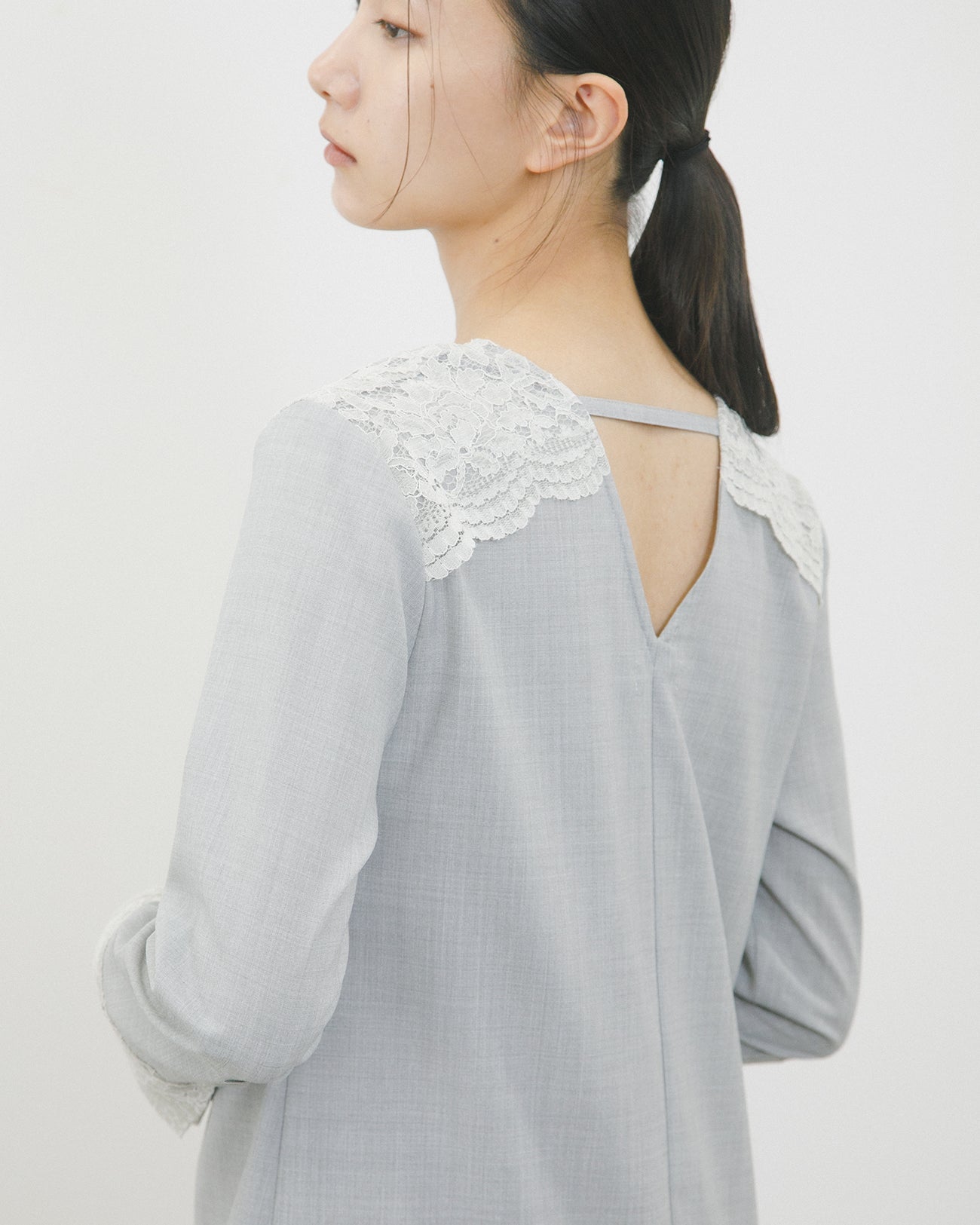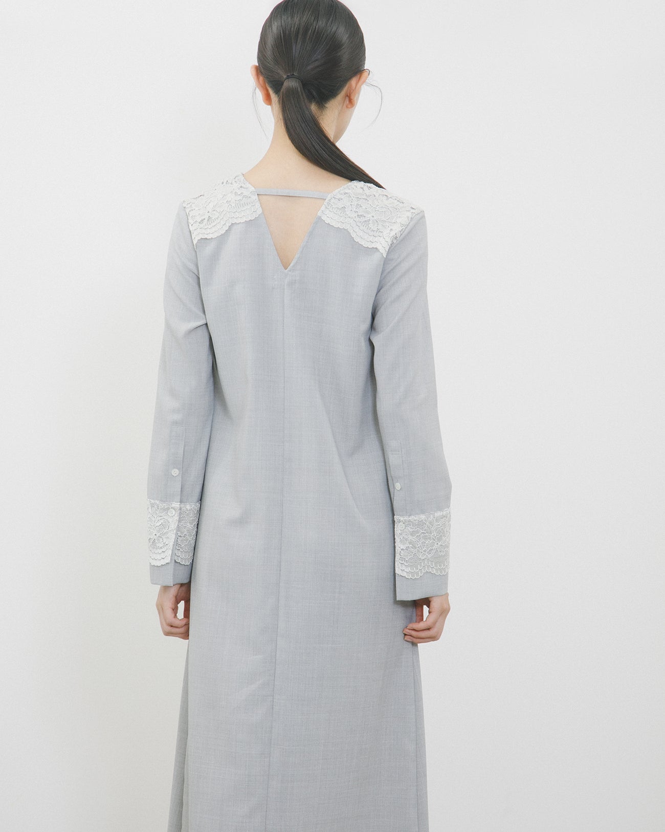 ヨークとカフス部分のレース使いがポイントのトロ素材のドレス。