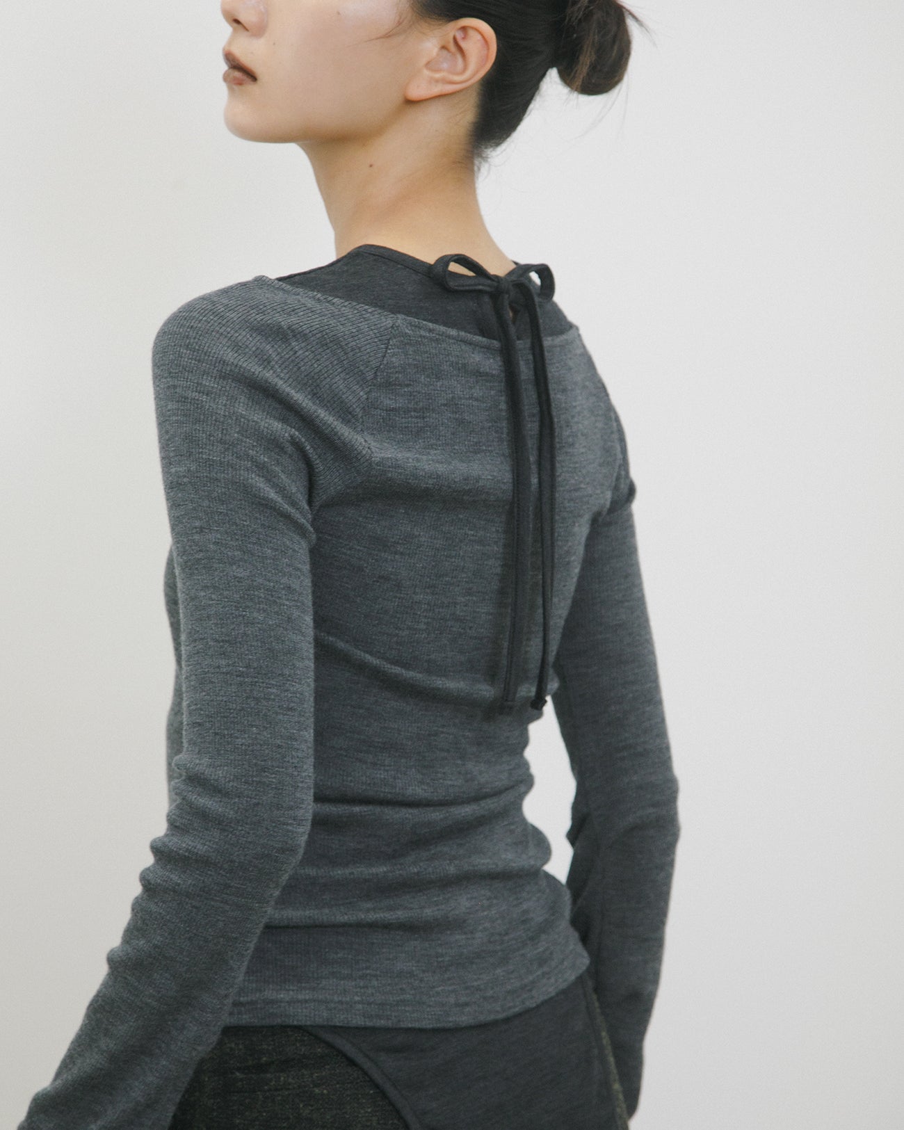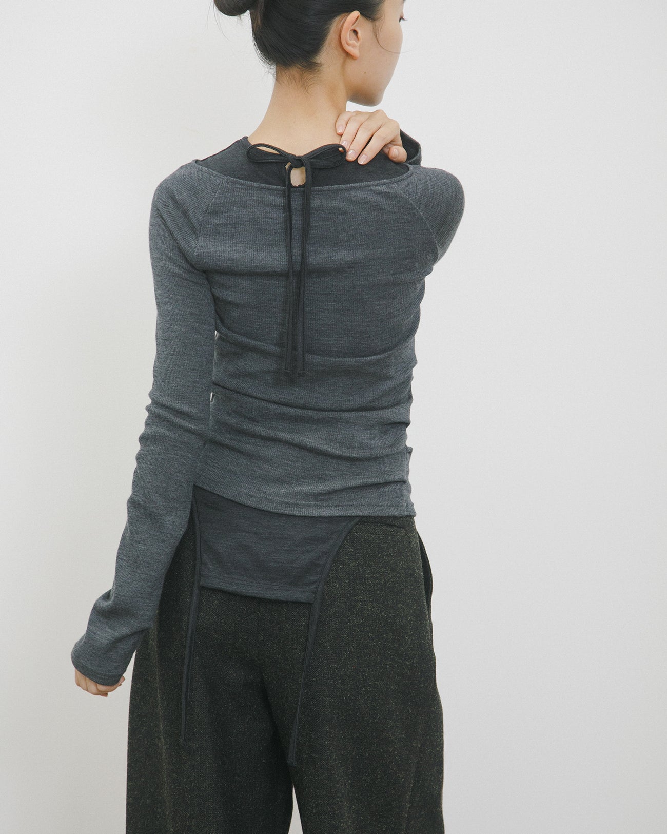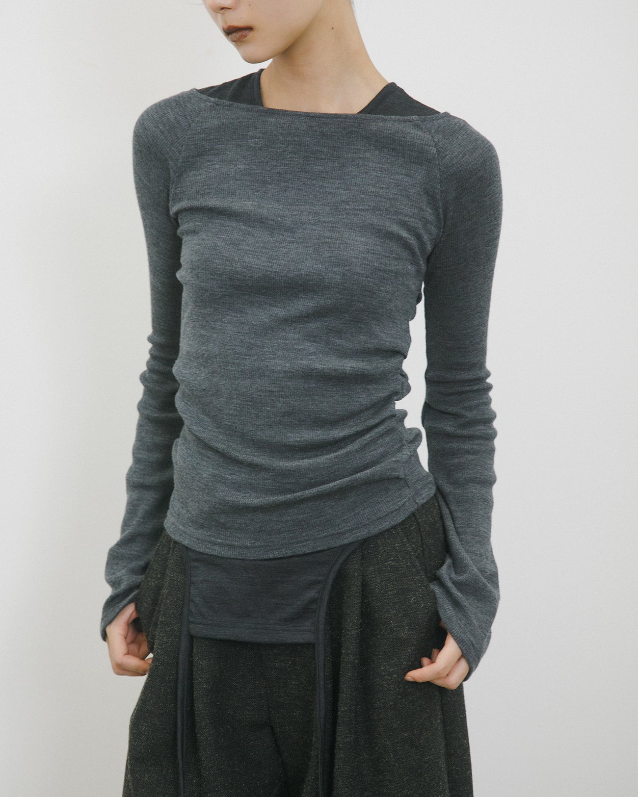 天竺素材とリブ素材をレイヤードして着られるデザイントップス。