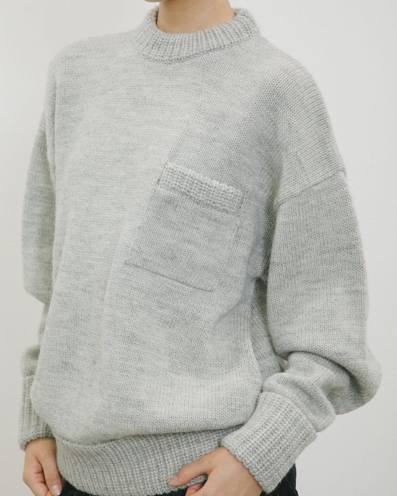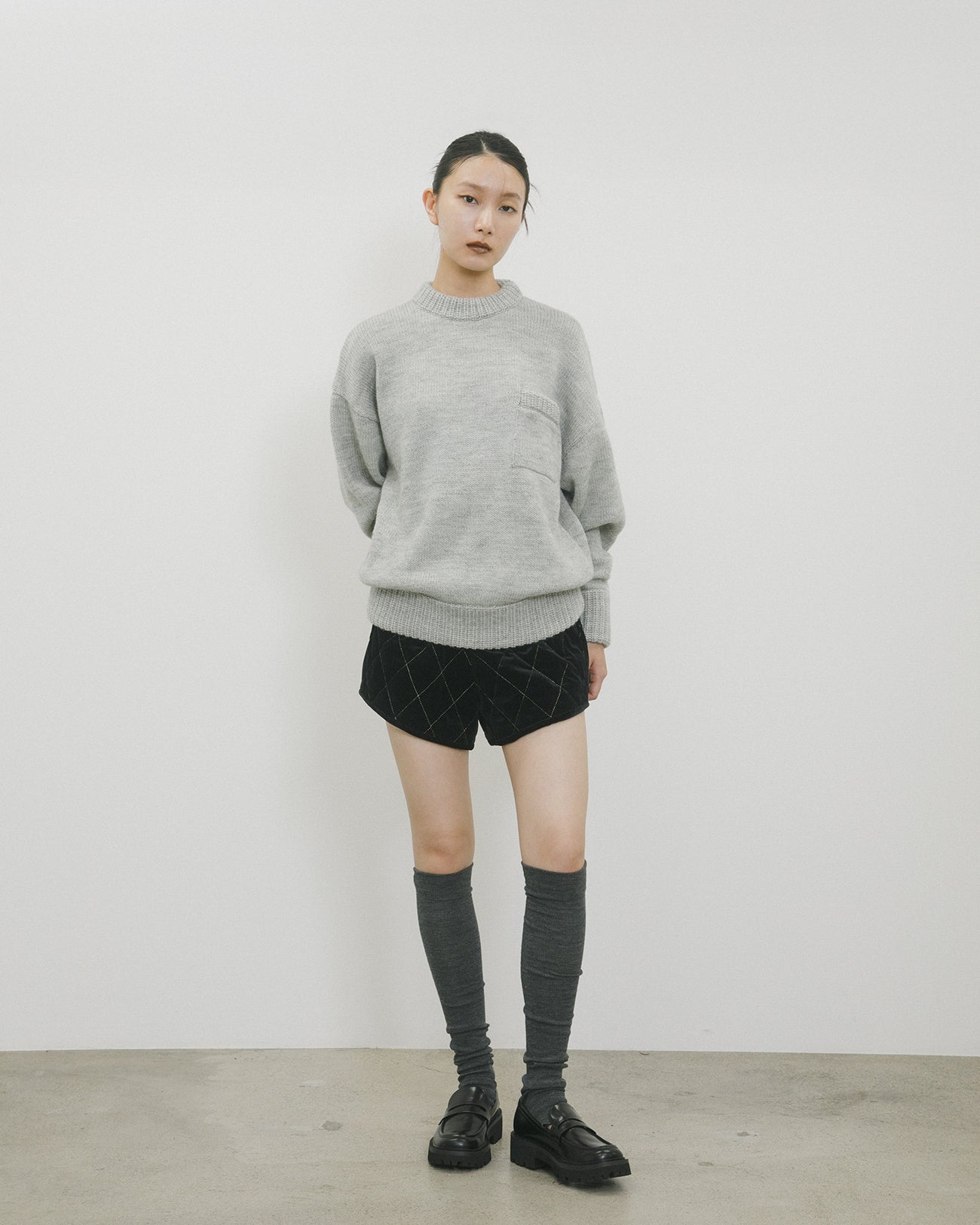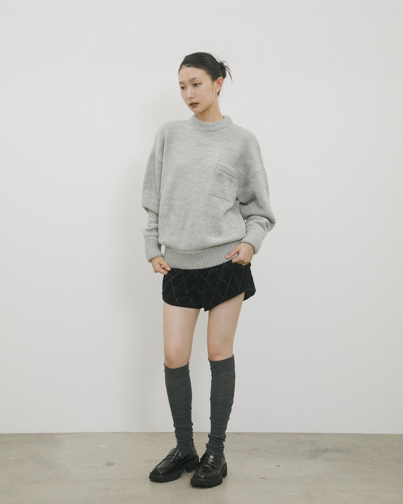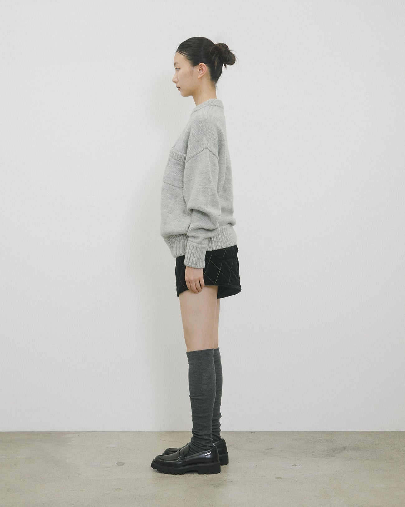 リブ部分が厚みのある畦編みになっているのでコロンとしており、見頃の編み地とのコントラストが効いたデザインがポイント。 ネックウォーマーだけでの使用も可能です。 表地:毛100% A pullover with a detachable neck warmer, crafted from bulky yarn for a cozy look. The rib sections are knitted in a thick fisherman’s rib, giving it a rounded, voluminous feel that contrasts beautifully with the body’s stitch pattern. The neck warmer can also be worn on its own, offering versatile styling options. Main Fabric: Wool 100% |
