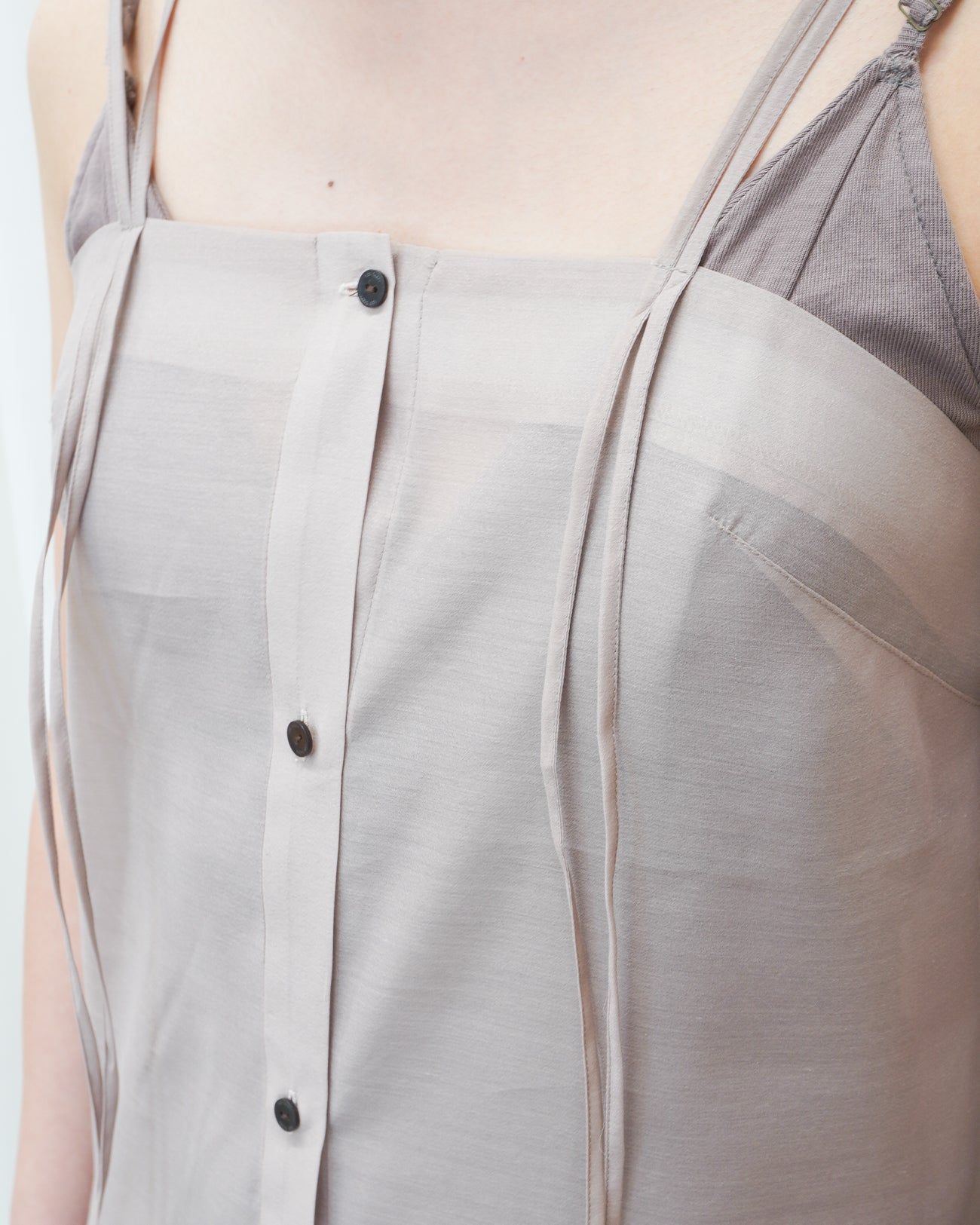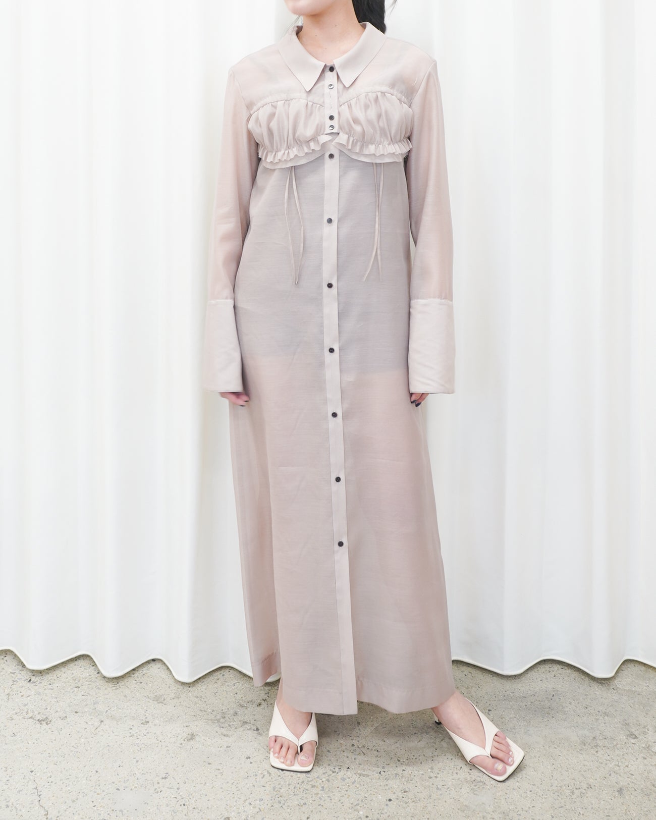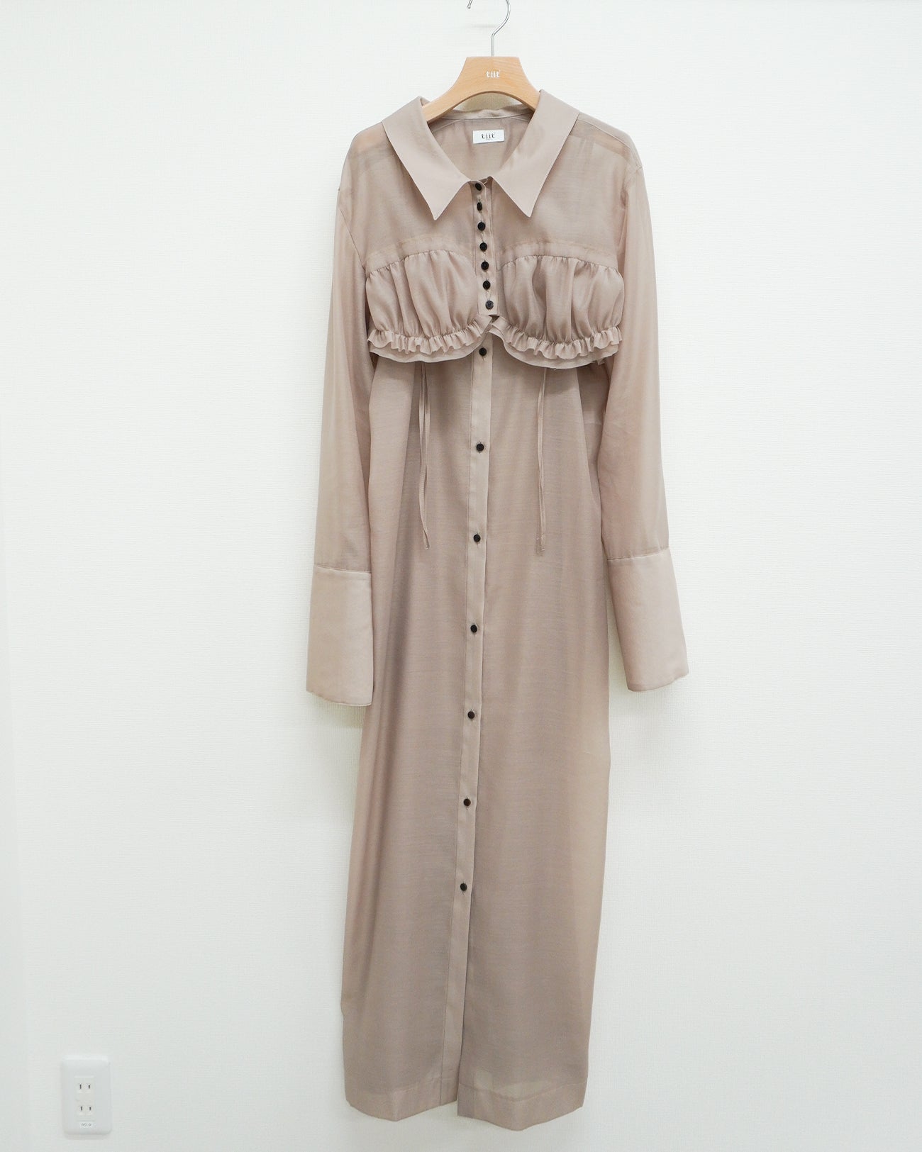 シアー素材を使用したパジャマシャツコンビネゾン。
