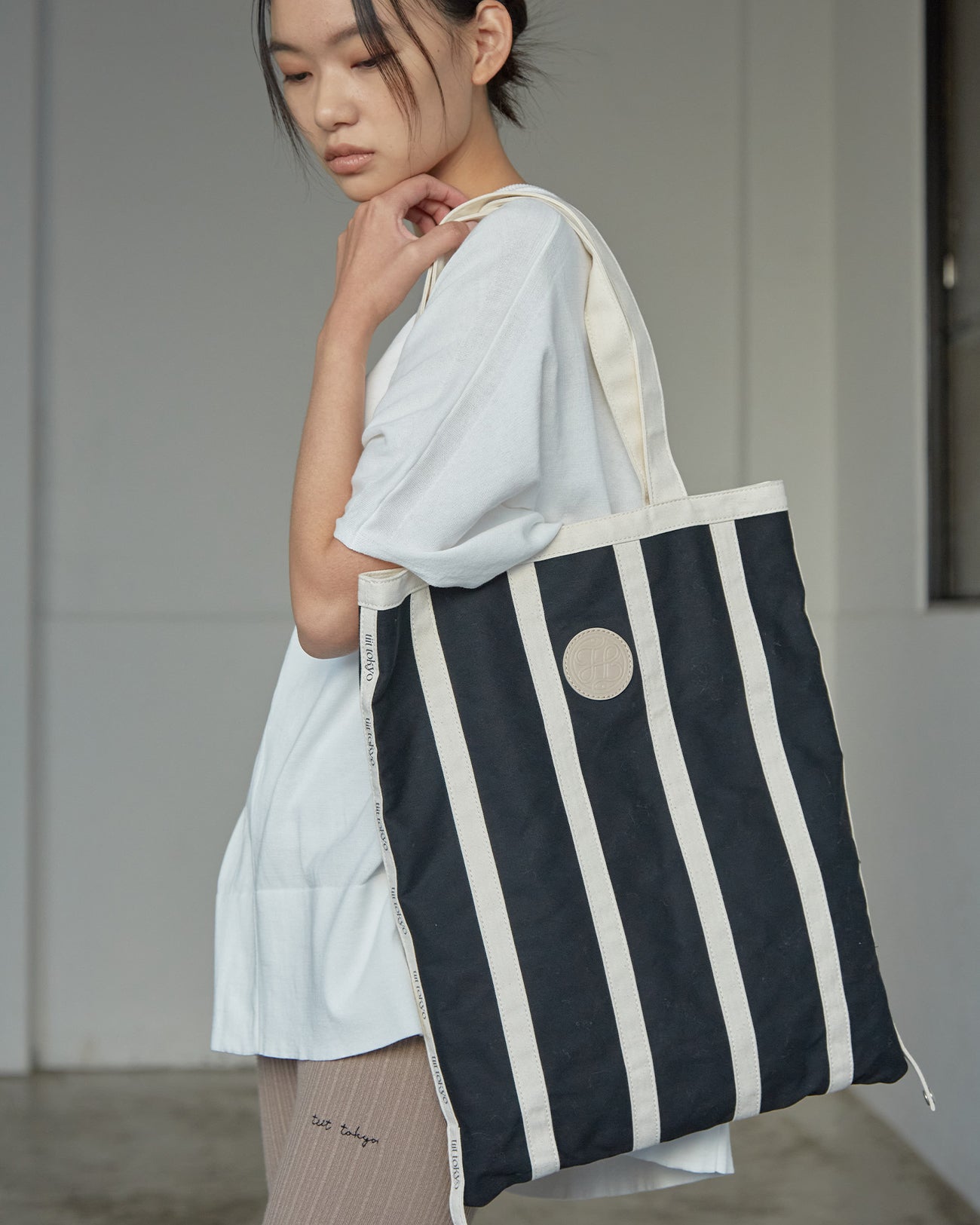 ストライプ柄とロゴがポイントのトートバッグ。