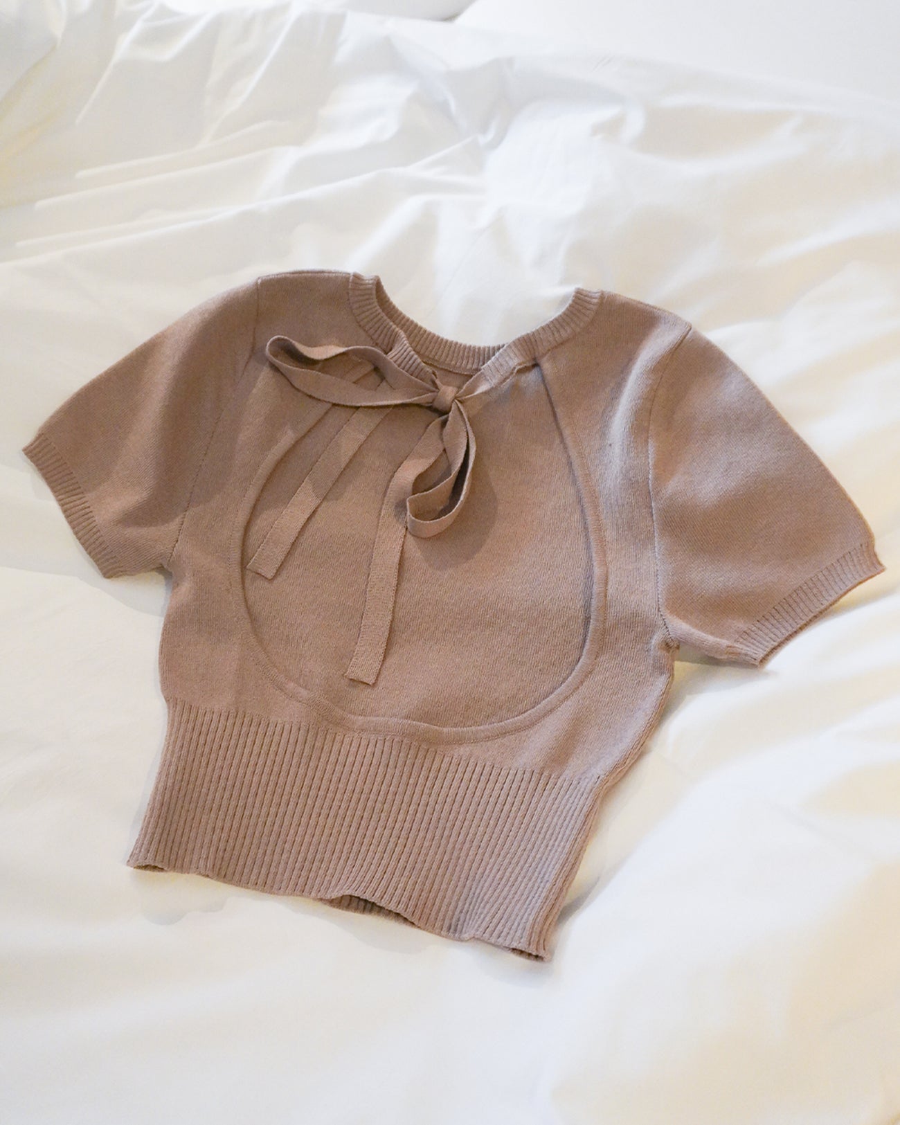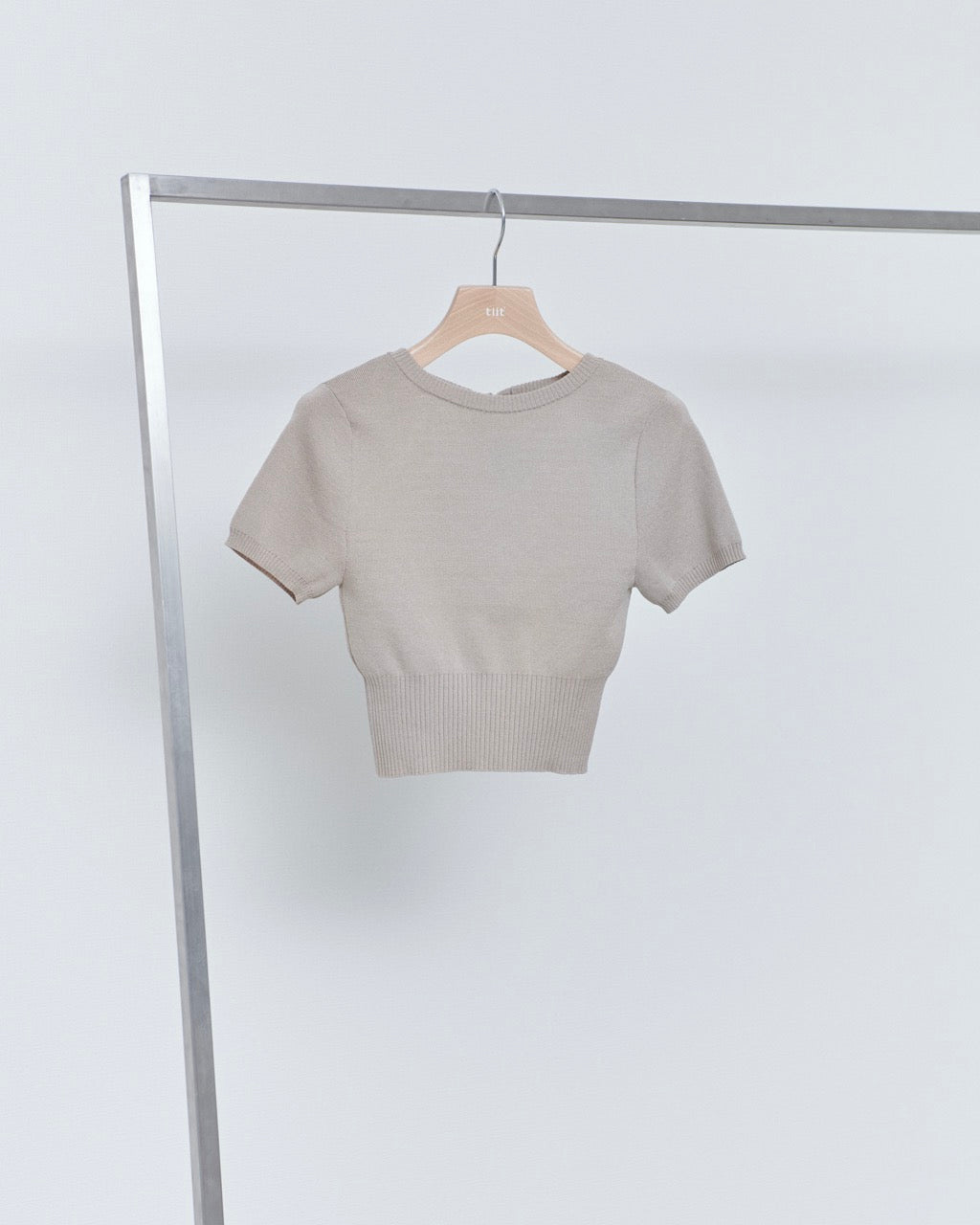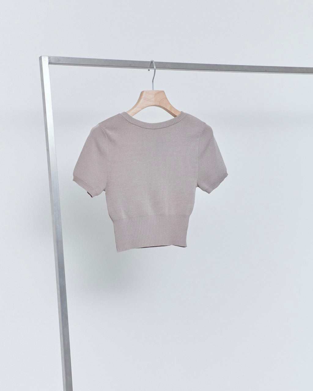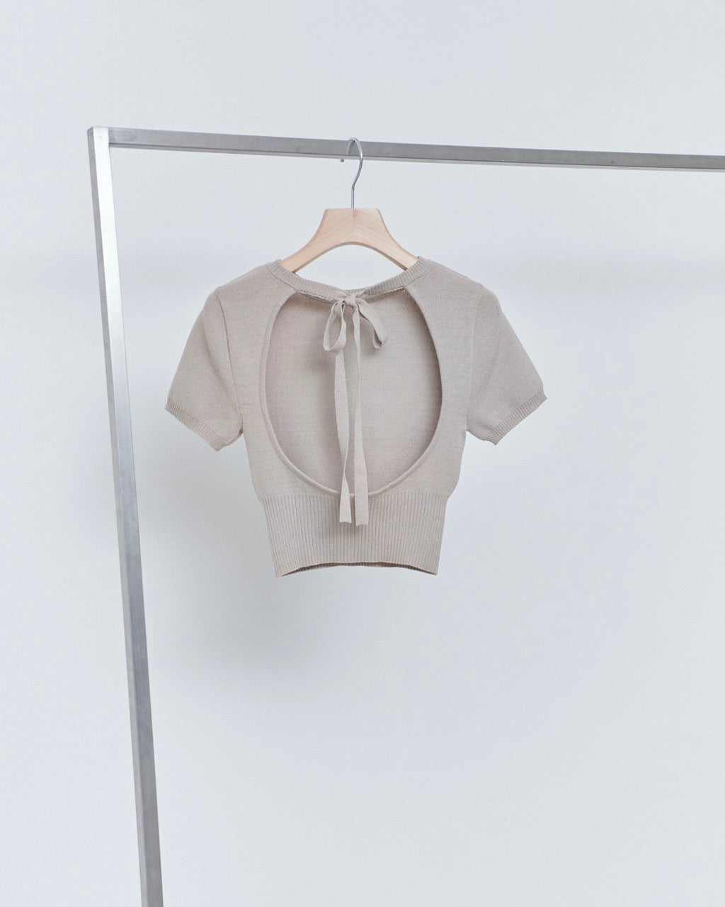 This mini top is made with a slightly crisp yarn. It features a distinctive large hole design and can be worn from both the front. With a tight fit throughout, it gives a clean impression. It's a piece that allows you to enjoy layering with other items.