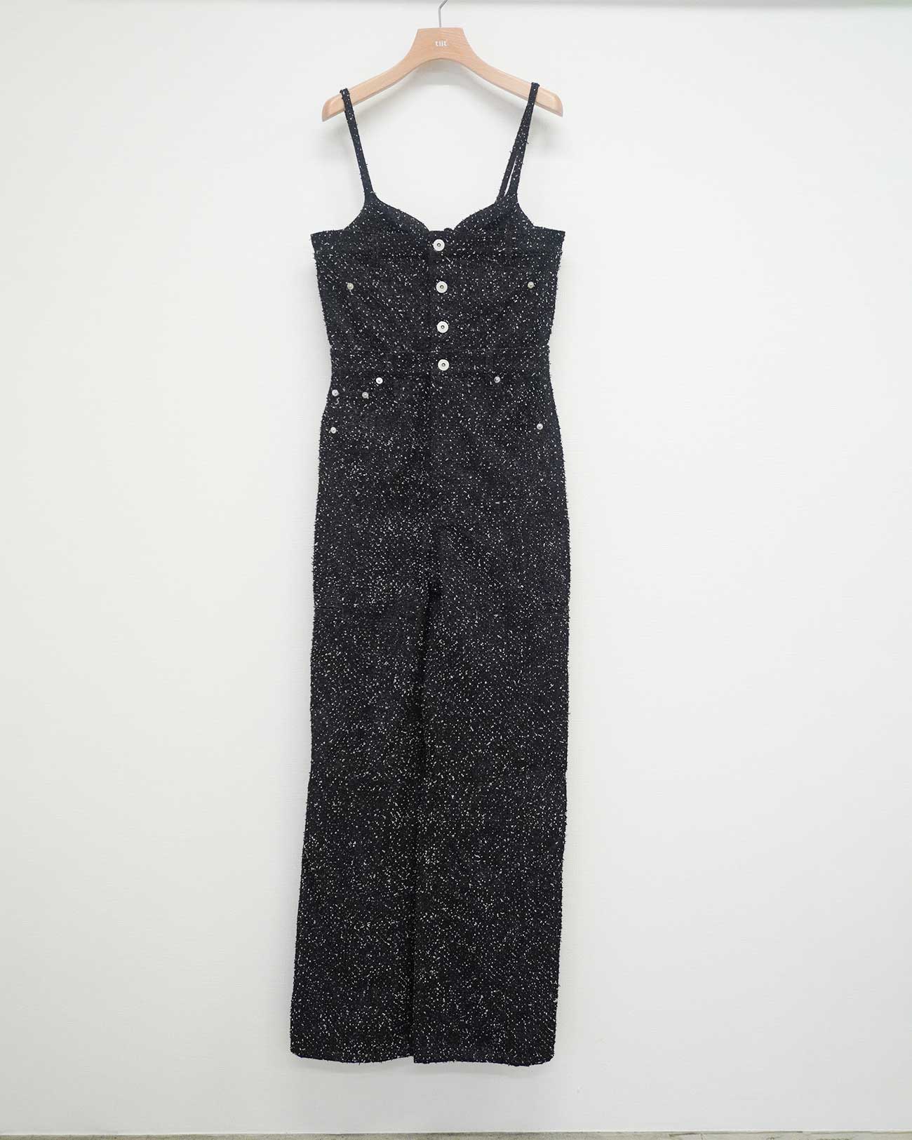 デニム生地にニードルパンチ加工をしたオリジナル生地を使用したオールインワン。