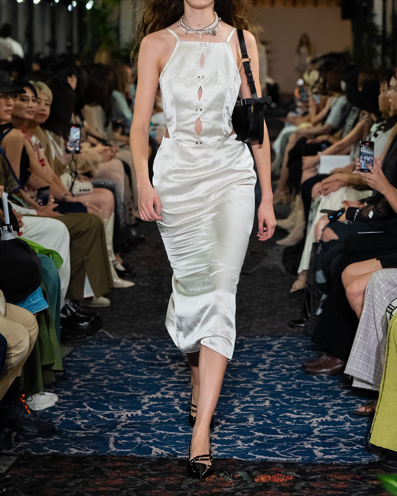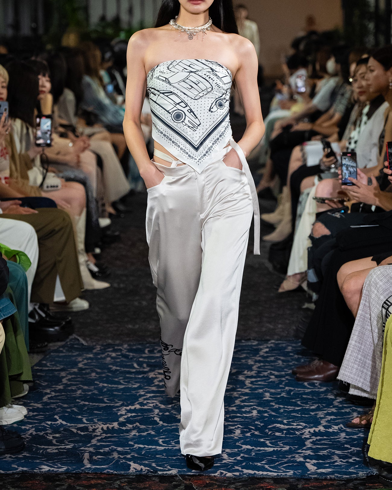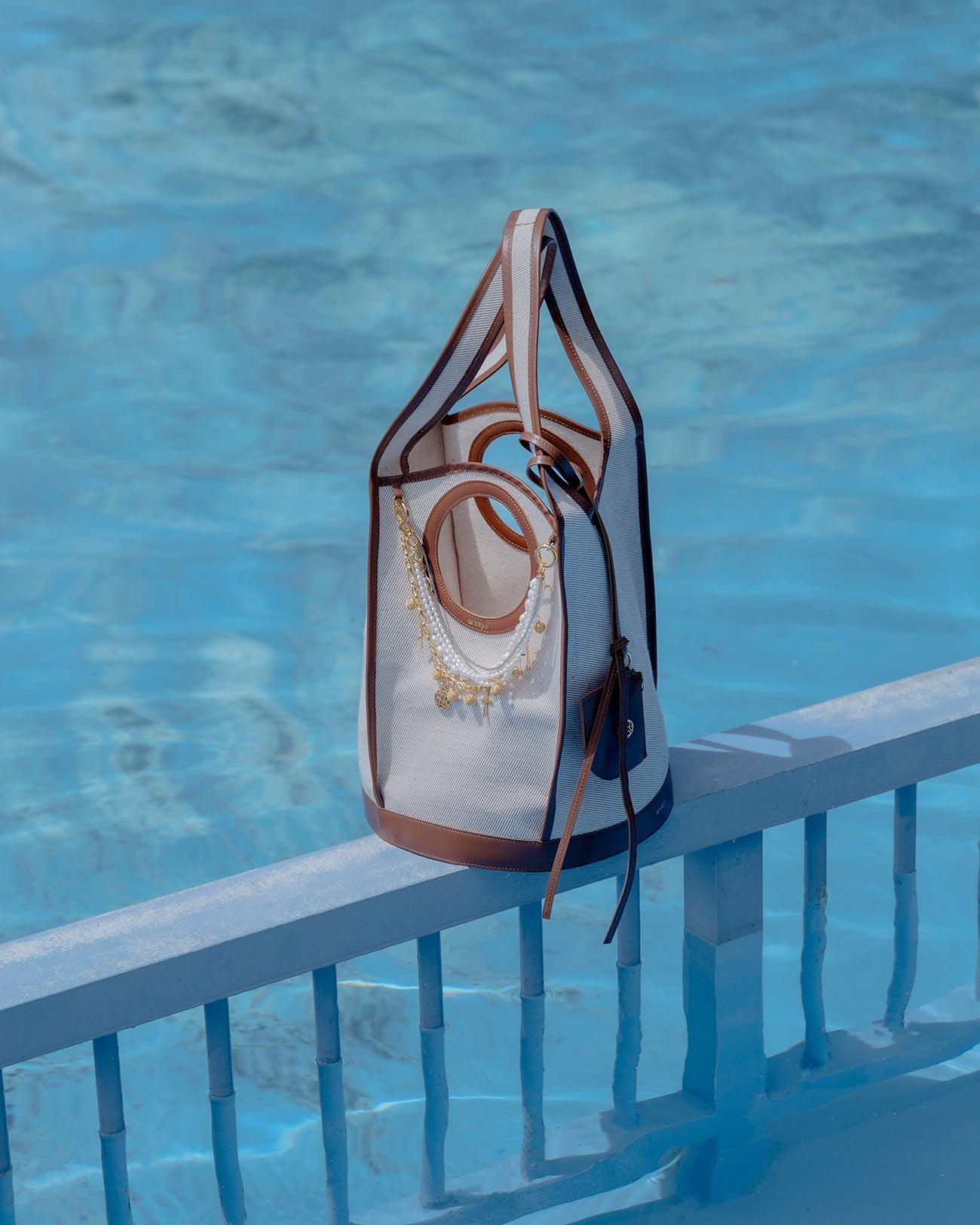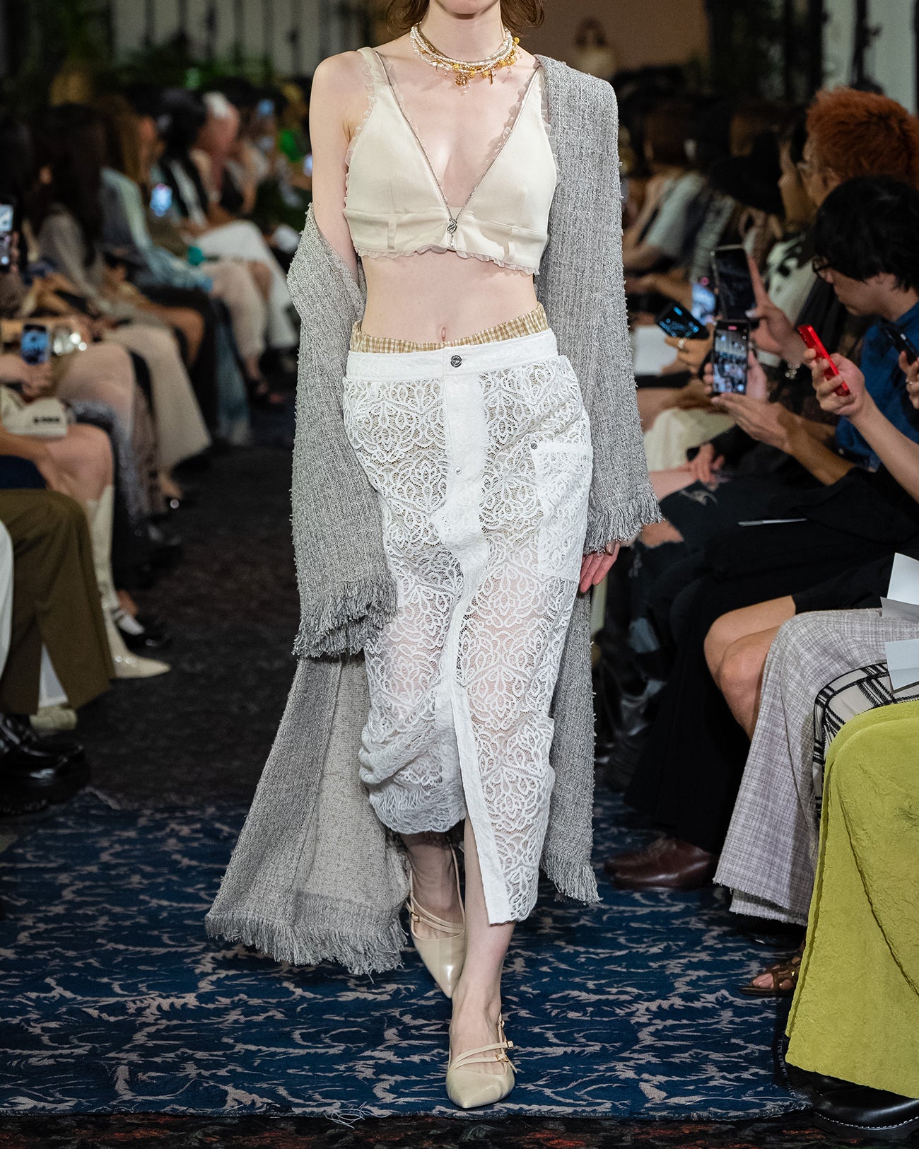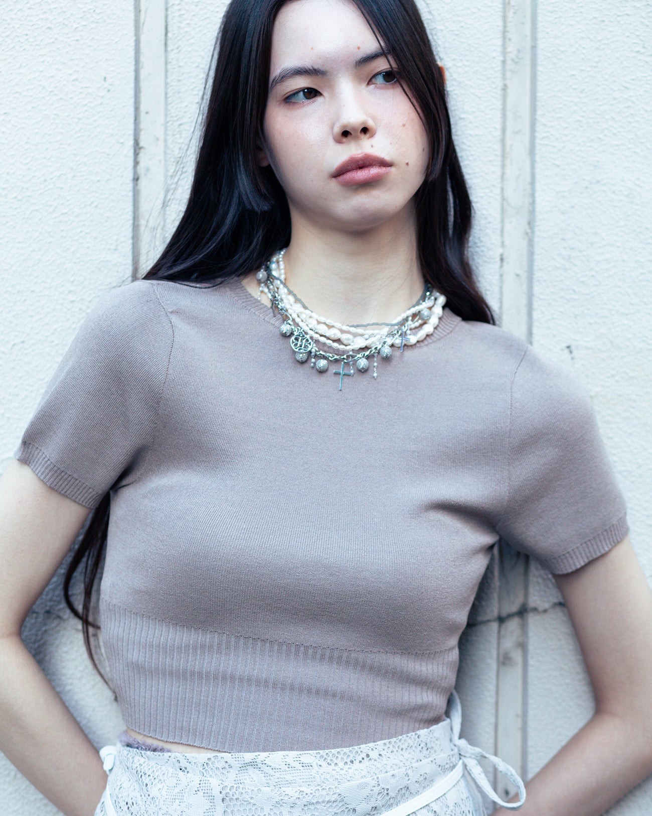 A 6-strand combination necklace delicately strung with pearls, chains, and beads of different designs. By mixing various sizes and textures of materials, it achieves an elegant and expressive finish. You can also enjoy it as a bag accessory by attaching it to your handbag.